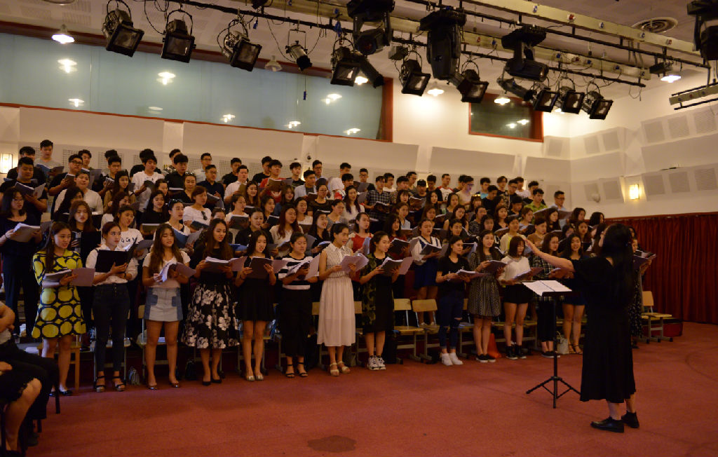 随后,双方进行了合唱交流,taptap点点合唱团首先以一曲《布兰诗歌》片段开场,声音明亮中蕴涵着悠远,和声交替轻快,深深吸引对方合唱团成员的目光。taptap点点合唱团由100余名来自于声乐歌剧系的学生组成,虽然都是本科学生,但他们已经参与过多项国家项目演出和国际交流活动。