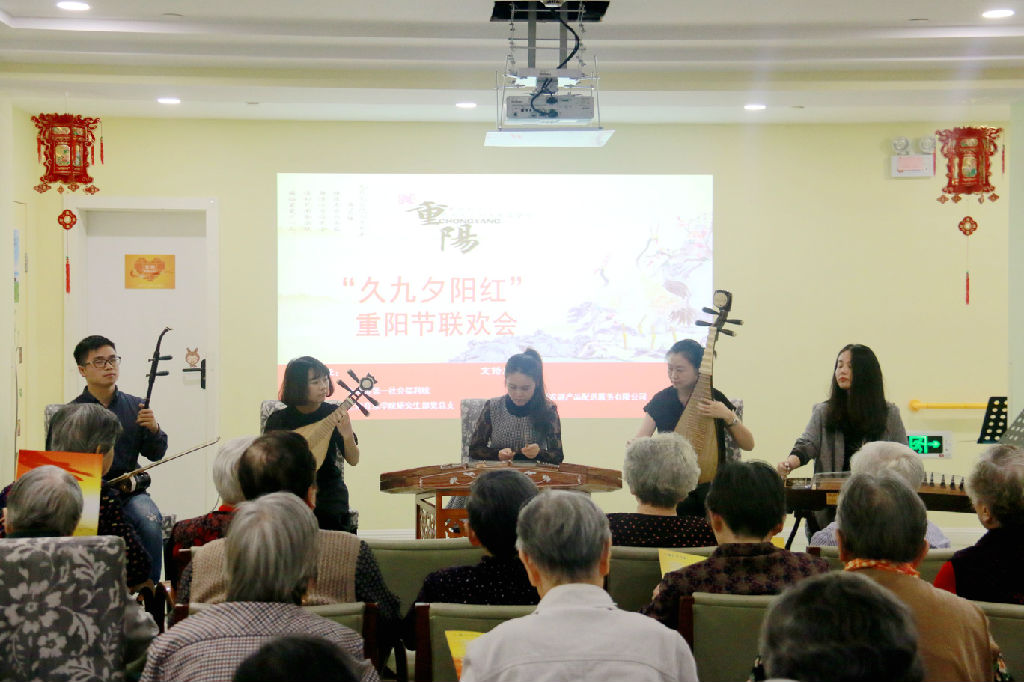 10月9日下午,重阳节文艺汇演“久九夕阳红”走进上海第一社会福利院。活动在报名初期便吸引了许多研究生,最终50名左右同学积极参与其中。为了照顾到行动不便的老人,在以往常见的舞台演出形式之上,研究生们还将“舞台”带进了老人的起居室。研究生们分组、轮流在福利院各个楼层的起居室内进行表演,无论是民乐《喜相逢》,还是女声独唱《一杯美酒》,都将温暖与爱洒遍了福利院的每个角落,使不方便来到主会场的爷爷奶奶们,也有机会感受到这寒冷秋日里的关怀。