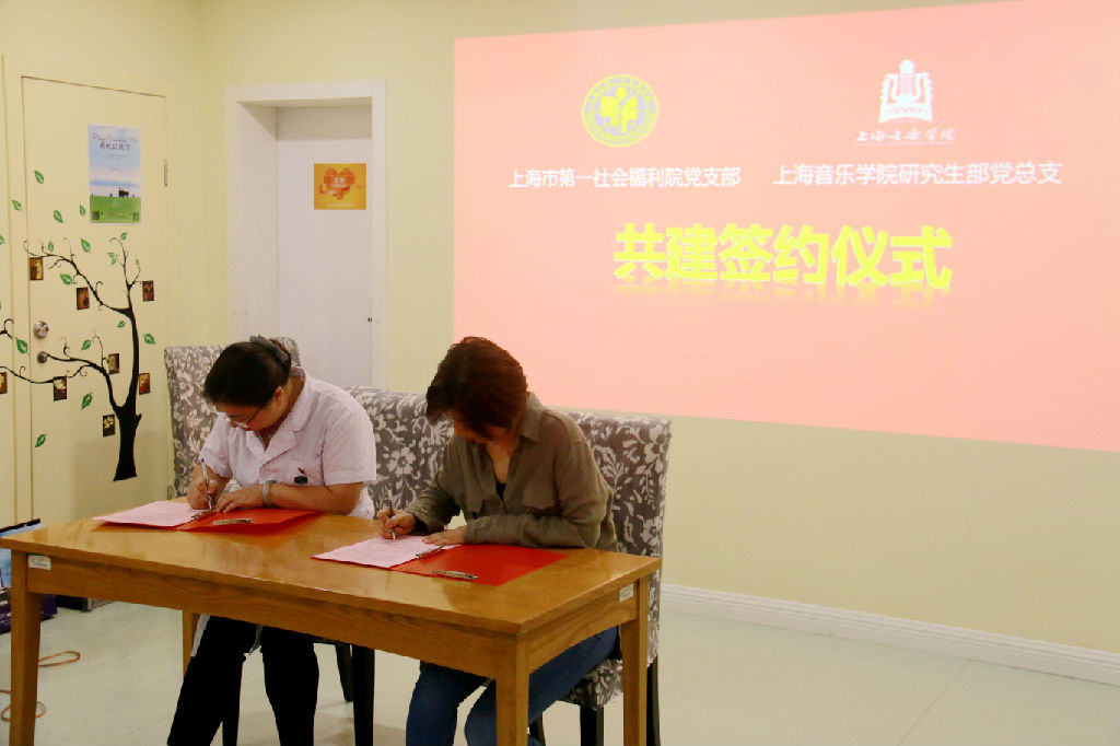在九九重阳节这个特殊的日子里,taptap点点体育研究生部党总支与第一社会福利院党总支签订共建协议。通过共建协议的建立,双方的关系更加密切且稳定。研究生们在向福利院提供音乐讲座、音乐指导、文艺演出的同时,福利院为研究生们提供群文艺术实践的舞台和相关教育培训的活动,这也是研究生也是走进社会、服务社会的重要平台。