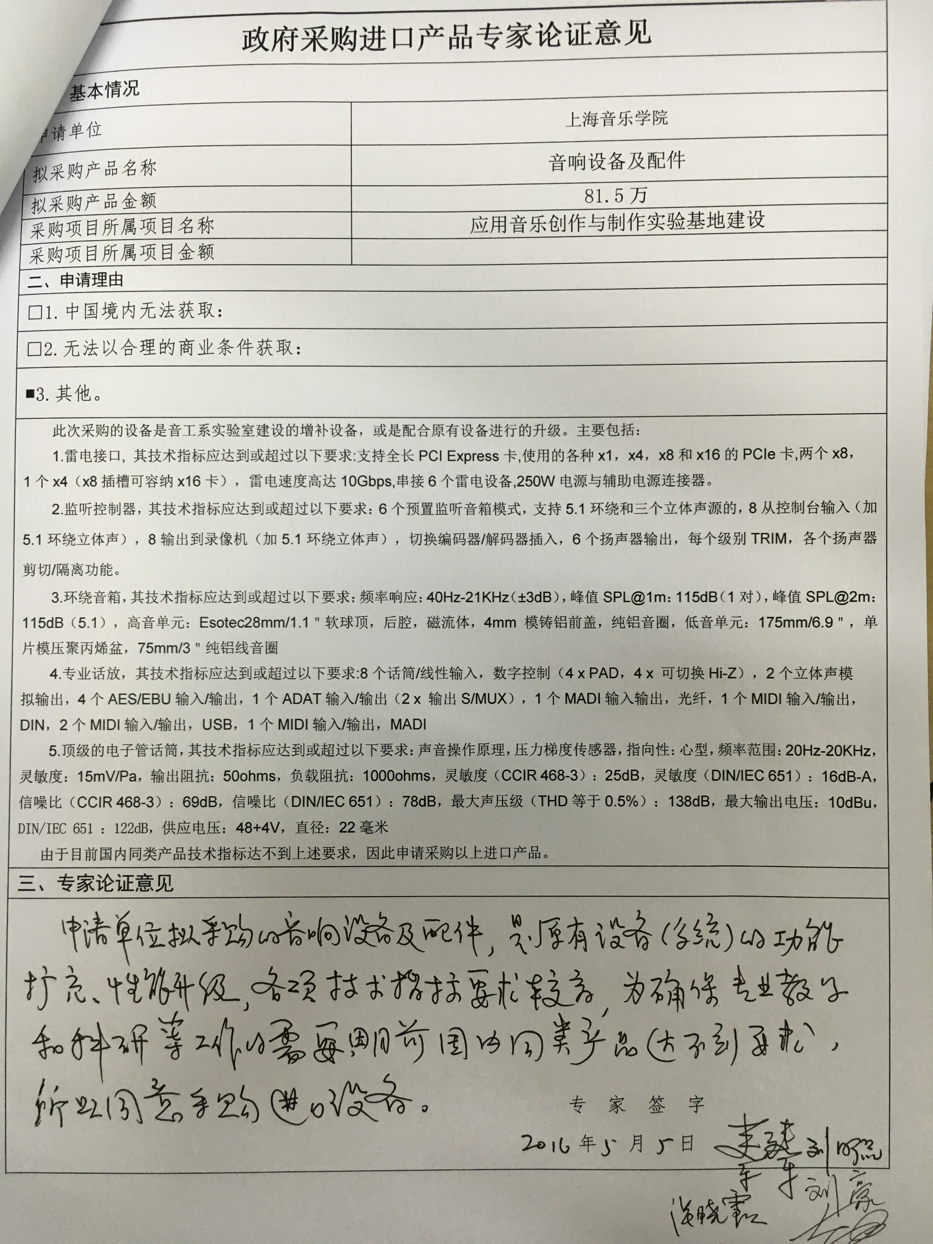 此批设备已与2016.5.5委托上海健生教育配置招标有限公司进行了进口产品专家论证(见附件)