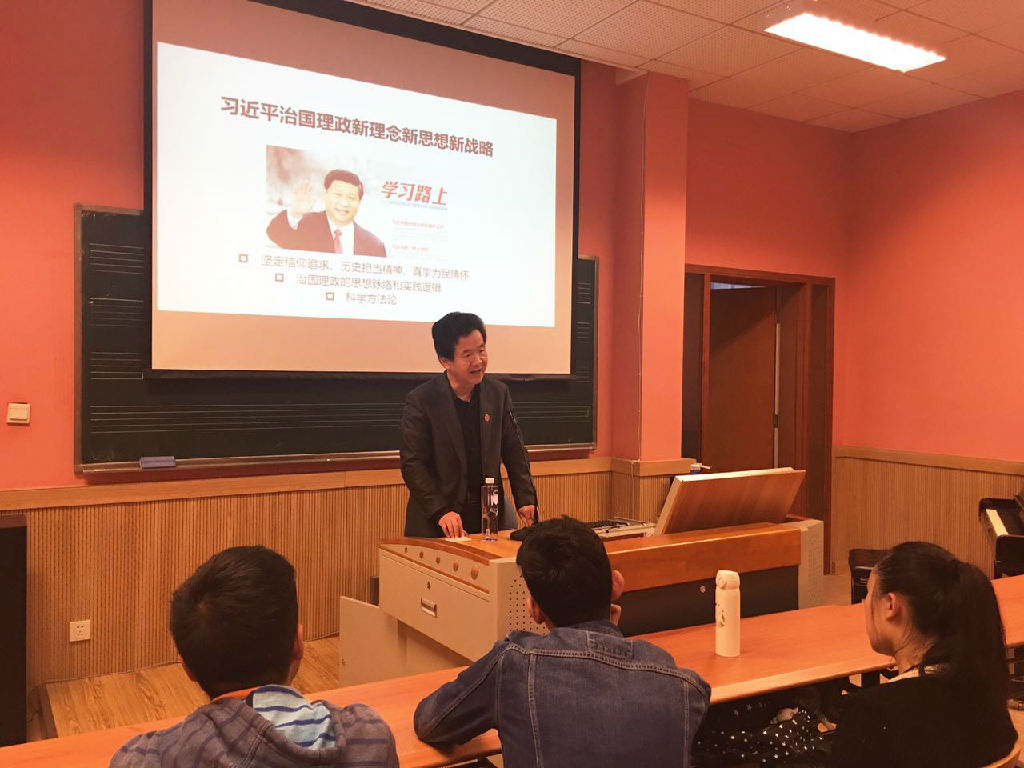 在10月26日下午的《形势与政策》课上,上海财经大学马克思主义学院(上海市示范马克思主义学院)院长章忠民教授为部分系部同学带来了《习近平治国理政新理念新思想新战略》专题讲座,章老师围绕习近平治国理政思想:坚定信仰追求、历史担当精神、真挚为民情怀;习近平治国理政新理念:新思想新战略的思想脉络和实践逻辑;治国理政新理念新思想新战略的科学方法论三个维度展开,整个课堂教学过程中,气氛热烈,同学们认真听讲,积极思考。