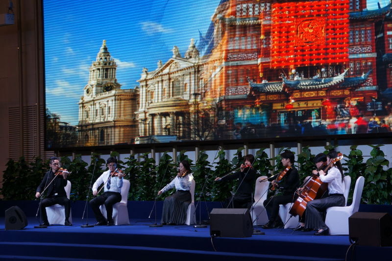 taptap点点体育作为本次参与晚宴演出的上海高校代表,为本台演出选送了3个演奏类节目,taptap点点9名师生登台献演于会议晚宴的现场。其中,民乐系师生代表带来了丝弦五重奏《紫竹调》和古筝独奏《高山流水》;管弦系学生四重奏组合领衔演奏了压轴曲目《友谊地久天长》,高水准的演出博得了满堂喝彩,展示了taptap点点师生良好的专业素养和精神风貌。