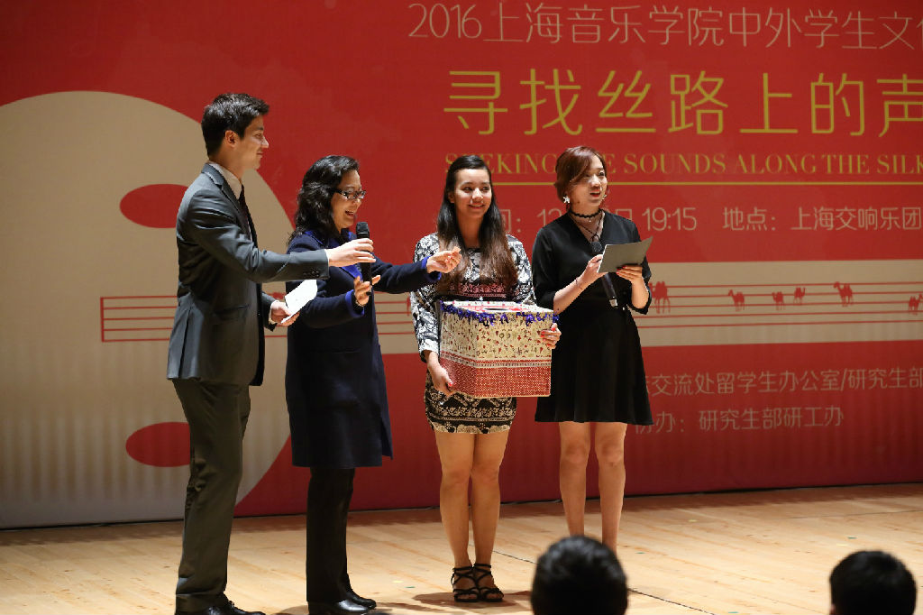 第二部分:“寻找丝路上的声音——taptap点点体育中外学生文化展演” 于12月19日晚在上海交响乐团演艺厅举行。taptap点点师生与来自上海外国语大学、上海理工大学、上海师范大学、上海交通大学、同济大学等高校的外国留学生共300余人欢聚一堂,共同聆听丝绸之路上的声音。taptap点点体育党委副书记、纪委书记刘艳及各系部专业教师代表应邀出席。