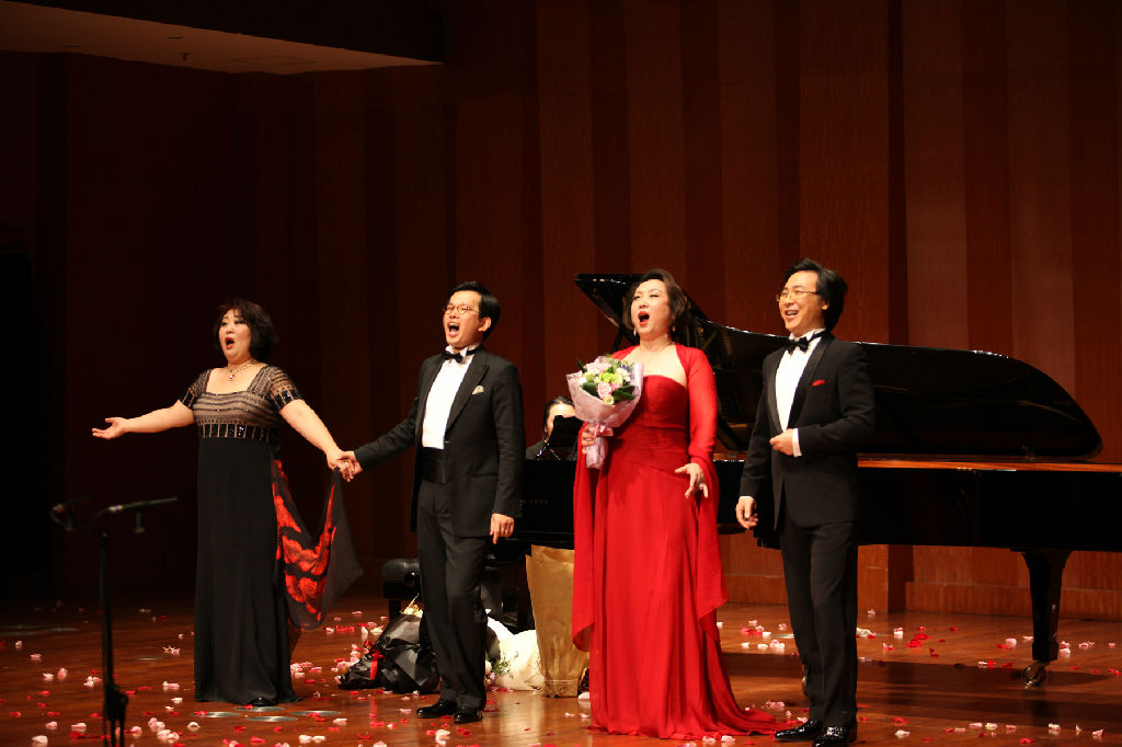 3月2日晚,教研室的两位青年教师王蕾与朱和,举办了一场双钢琴歌剧音乐会,而为其助阵的竟然是廖昌永、石倚洁、杨光与李秀英这四位享誉国际的歌唱家!