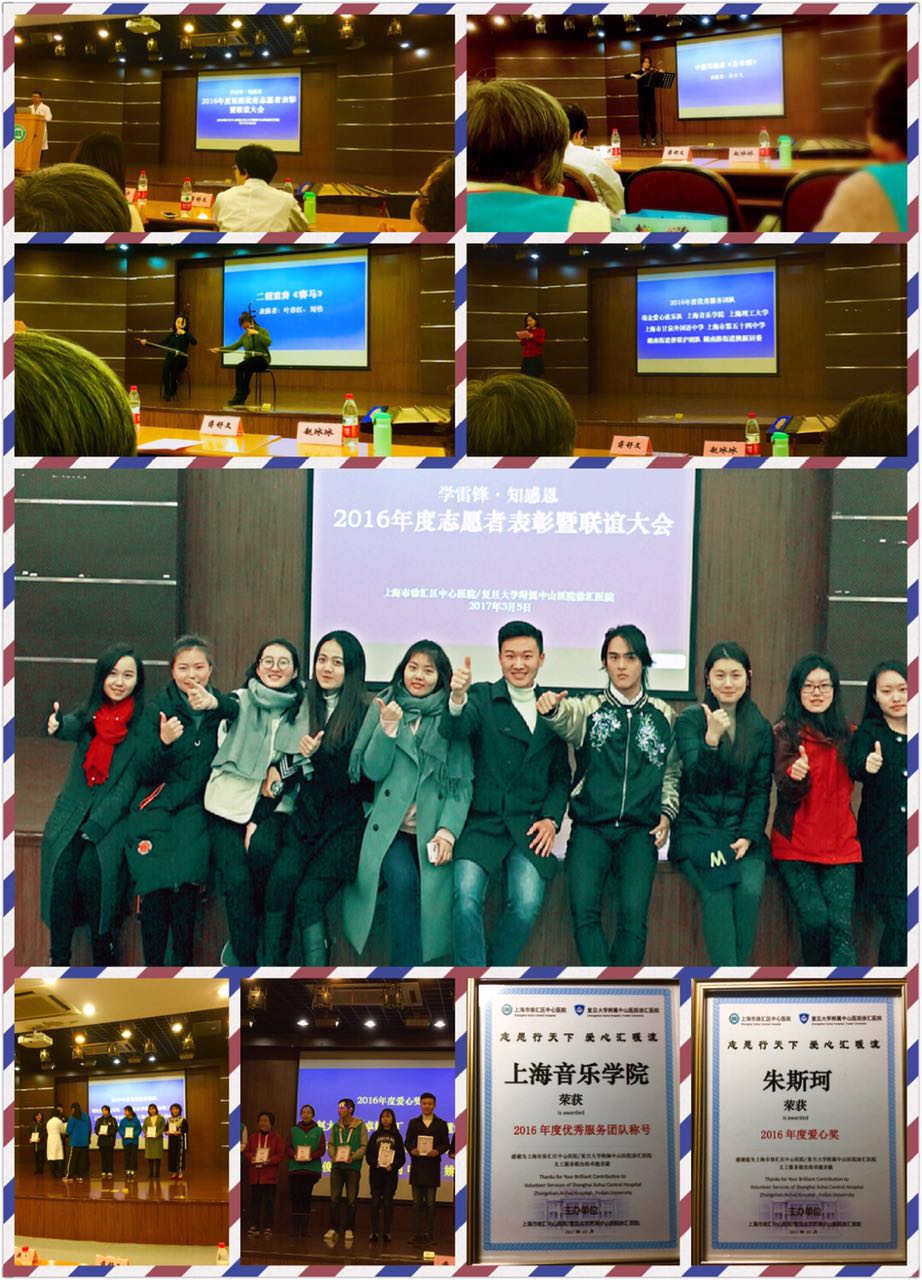 “志愿行天下,爱心汇暖流”,3月5日,上海市徐汇区中心医院、复旦大学附属中山医院徐汇医院举办了“学雷锋、知感恩”2016年度志愿者表彰暨联谊大会。在此次表彰大会上,taptap点点体育志愿者团队被授予“2016年度优秀志愿服务团队”荣誉称号,院学生会副主席兼志愿者部部长朱斯珂被授予“2016年度爱心奖”。