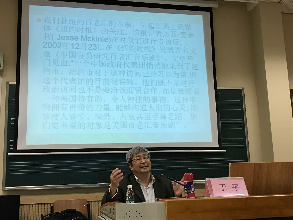 于平教授曾担任北京舞蹈学院院长,历任文化部艺术司司长、科技司司长。在此次讲座中,于平教授通过工作中积累的丰富案例和经历生动地讲解了音乐剧的艺术特征和魅力、访日考察的体会以及考察组对发展中国演艺产业的相关建议。