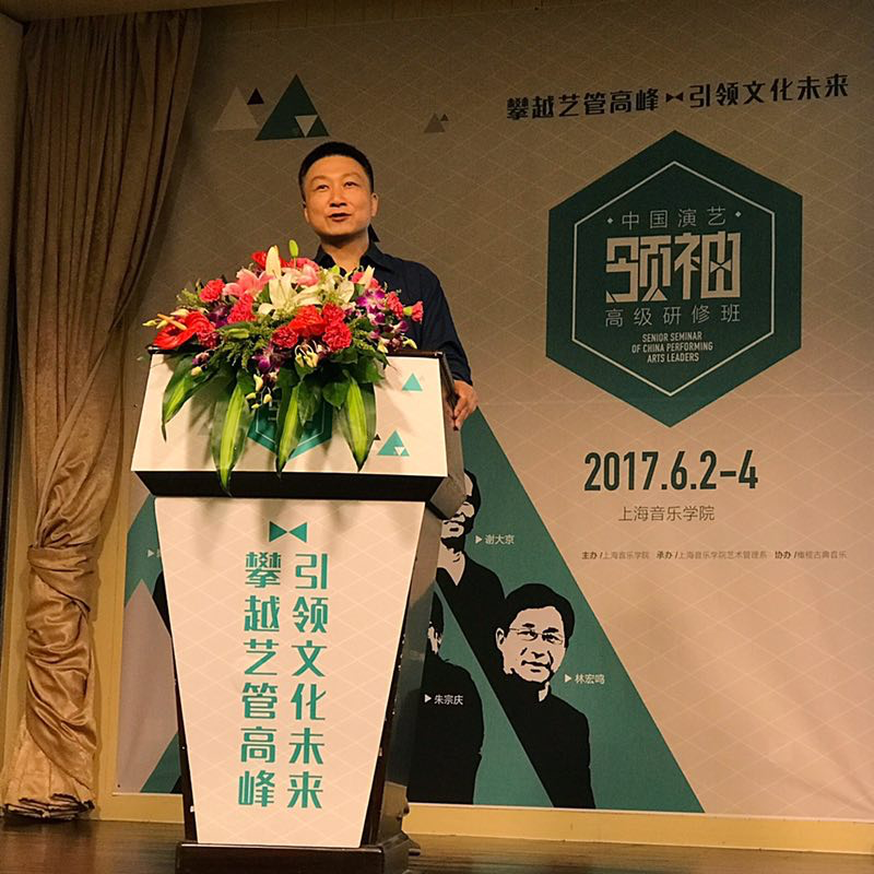 最后一天是由享誉国际的指挥家汤沐海和台湾表演艺术中心董事长朱宗庆着眼于院团的管理、运营和发展展开。讲题分别是“交响乐的发展与中外乐团的比较”和“表演艺术团体的经营和管理”。有一位老总学员课后写了1500字的总结和体会在微信朋友圈分享。汤沐海指挥看后说“总结得还真不错”。朱宗庆在31年前创立的“朱宗庆打击乐团”在国际乐坛享有很高声誉。他在演讲中诙谐地说他不动就讲不了话,所以两个半小时台上台下边走动边用生动幽默的语言阐述了给人启迪的艺管理念及前瞻举措。有学员感叹说:“朱老师讲得好!和他管理过学院、乐团、剧场,建立财团,推广教学系统的经历有关,融会贯通。”