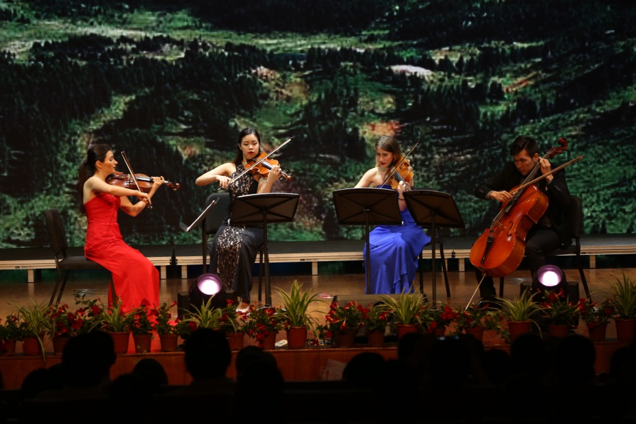 留学生办带来了弦乐四重奏——亚美尼亚传统套曲。他们来自不同国家,然而因对音乐的执着与热爱而相聚taptap点点,用自己独特的方式表达了对母校的感激之情。