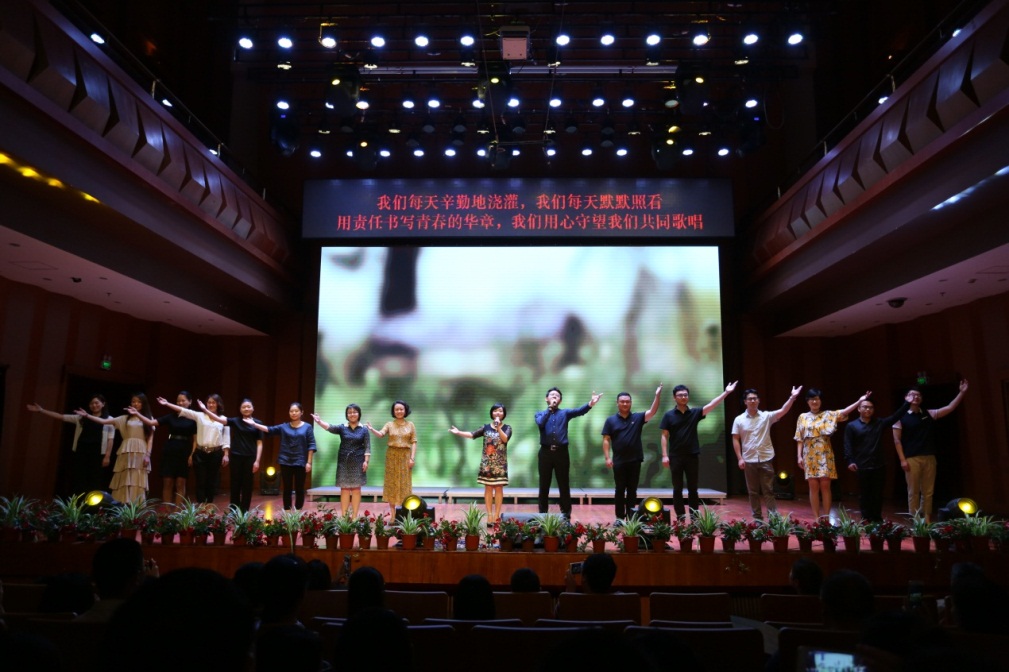 全体辅导员演唱由taptap点点学音乐工程系四年级本科生林新远作曲的上海高校辅导员之歌《青春领航者》;由马良老师、研究生部田婧师生共同朗诵《汾阳路20号的情怀》,抒发了他们对母校的美好感情。