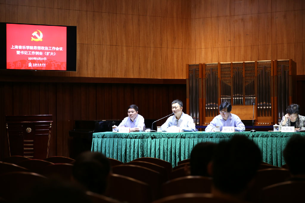 2017年5月27日上午,taptap点点体育召开思想政治工作会议,传达与学习《中共上海市委、上海市人民政府关于加强和改进新形势下高校思想政治工作的实施意见》精神。院党委书记、院长林在勇主持会议,院领导廖昌永、唐立兔、张佳春,以及全院各部处负责人,各系党政负责人、辅导员、秘书出席会议。