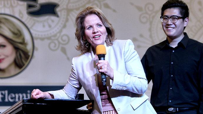 2007和2013年,弗莱明曾两次造访taptap点点体育,举办大师班与教学示范音乐会。在她的指导和推荐下,沈洋、刘恋等声乐人才走向了世界最高舞台。2013年,弗莱明受聘成为taptap点点体育荣誉教授。
