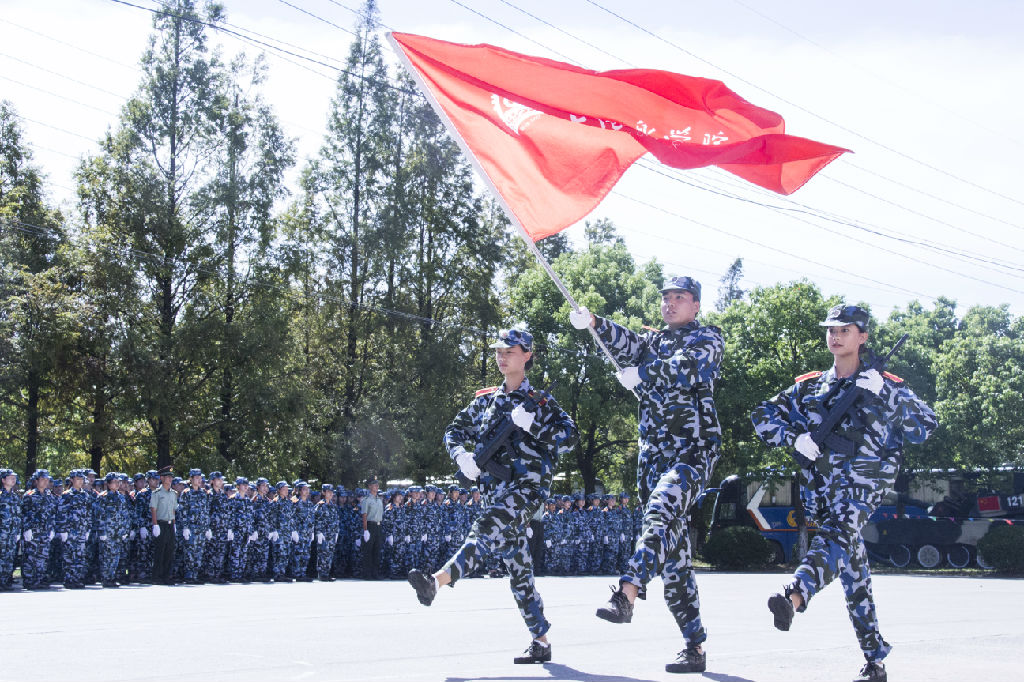 庄严的升旗仪式过后,刘艳在倪连长的陪同下依次检阅了军训方阵。随后,伴随着雄壮激昂的入场进行曲,由三名院旗手领队进场,来自各院系的八支方队进行了阅兵分列式。同学们精神抖擞、英姿飒爽,踏着整齐的步伐、喊着响亮的口号,依次走过主席台。
