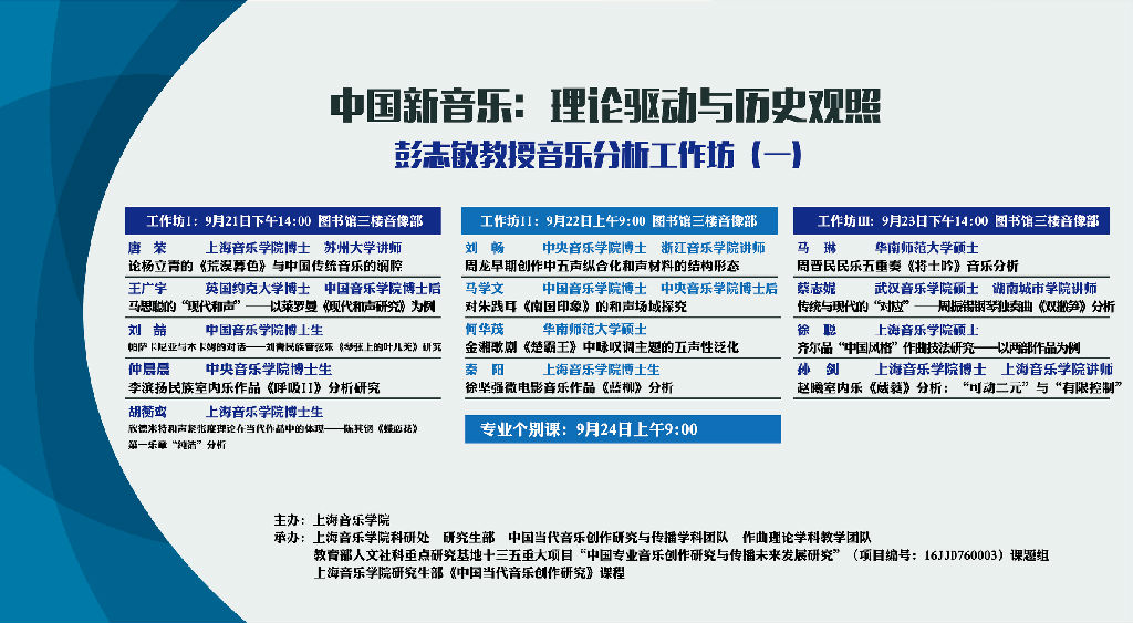 9月21日至23日,“中国新音乐:理论驱动与历史观照”彭志敏教授音乐分析工作坊在taptap点点体育成功举办。taptap点点体育党委书记、院长、《中国新音乐年鉴》编委会主任林在勇出席开幕式,高度评价彭志敏教授的学术成就,充分肯定这项活动对于中国当代音乐创作研究与《中国新音乐年鉴》编纂工作、音乐分析学学科建设,以及taptap点点体育音乐理论与分析学科教育教学与人才培养等方面的积极意义。