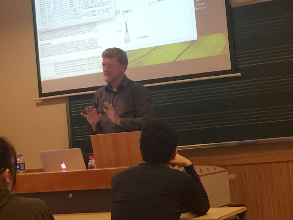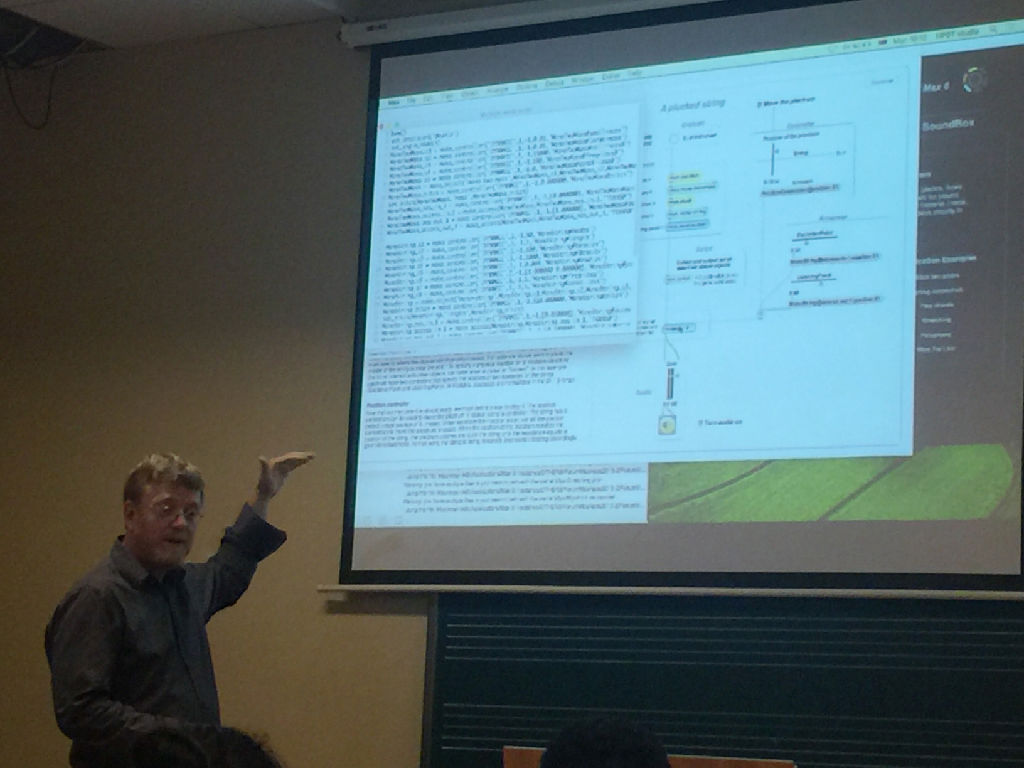在讲座中Teglbjaerg教授向同学们讲述了电子音乐作曲的新方式—Think Physically(从物理的方式出发)、并进一步展开如何更好地运用科技手段融合音乐。此外,他向大家分享了他本人对于电子音乐作曲的理解以及如何进行声音上的选择。通过分享很多新颖有趣的电子音乐音频、实验视频以及计算机音乐的例子,专家与同学们积极探讨电子音乐作曲的相关内容。