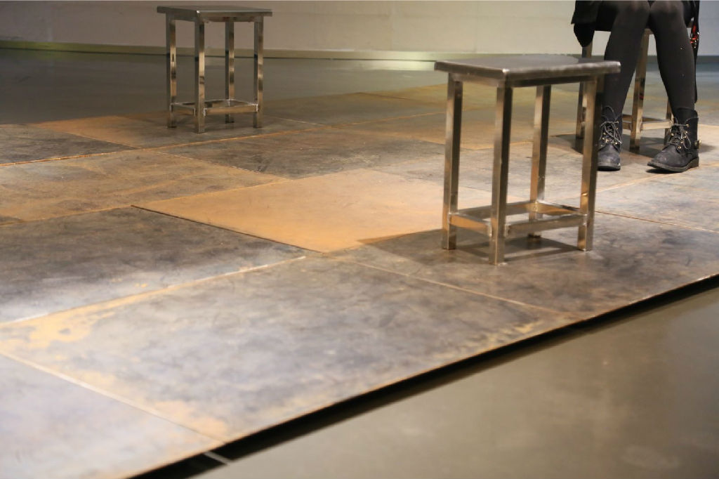 空间会说话。名为“颤动”的作品将雕塑与音乐相结合,金属板和木椅构成一个空间,当你进入这个空间,声音将和弦与柔和的节奏融入层状旋律线条,并通过不断移调和对位发展。木椅和金属板起着扬声器的作用,压电换能器使薄钢和木制的侧面振动从而发声。