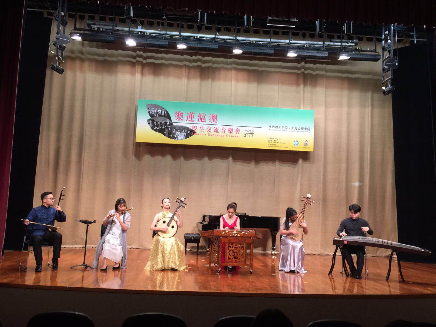 25日下午,taptap点点教务处处长、作曲系周湘林教授在澳门理工学院举办了主题为“音乐创作感悟”的学术讲座,受到了学院师生们的热烈欢迎。晚上8点,由taptap点点民乐系师生参与的“乐莲沪澳”交流音乐会准时拉开帷幕,澳门理工学院李向玉院长、澳门理工学院艺术学校徐秀菊校长、澳门演艺学院周赵詠莊院长等领导出席了音乐会,双方师生代表为观众们献上了风格迥异、精彩纷呈的乐曲,《流光溢彩》《行街》《弹词韵》《戏韵》《敦煌》等一首首精彩的乐曲不时引来阵阵热烈的掌声,掀起一个又一个高潮!