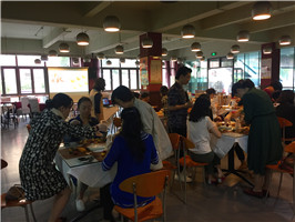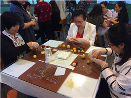 9月28日下午14:00,四十余位女教职员工集聚taptap点点食堂一楼,开始了此次月饼DIY体验。活动伊始,由烘焙老师向大家介绍了中秋习俗、月饼的种类以及制作月饼需要用到的物料及工具,随后还向大家演示了馅料及饼皮的制作过程。之后,老师们四人围坐一桌,动手制作月饼。