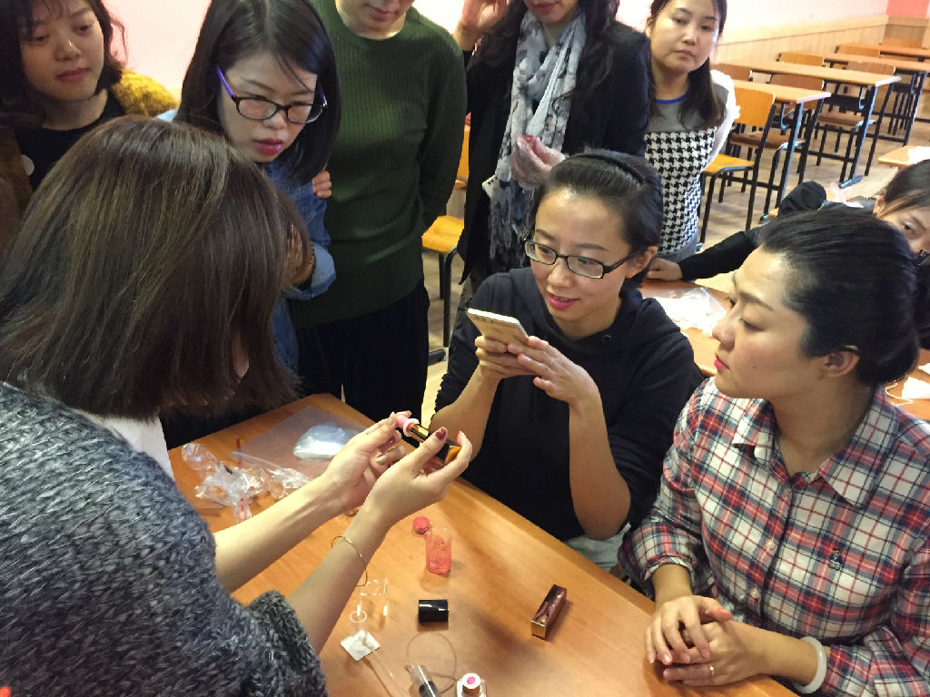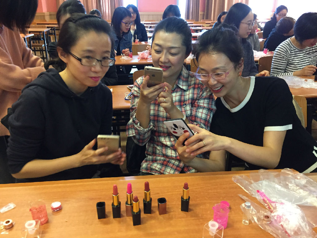 活动通知发出后,在女教职工中反响热烈,报名极其踊跃。10月25日中午,共有近40位女教工来到活动现场,参与唇膏制作。首先,大家在正红、玫红、橘红和豆沙四种常用色中选择一种自己中意的色彩,然后在专业老师的指导下,使用纯天然的“食品级”原料,加入高品质VE及玫瑰精油,成功做出一支自己的专属唇膏。在唇膏脱模的过程中,有老师惊喜地发现,做出来的唇膏尖上,居然是一朵含苞待放的玫瑰。