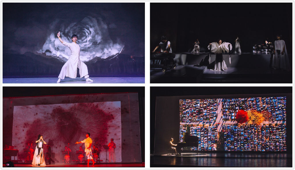 10月26日多媒体音乐剧《东去西来》在梅赛德斯-奔驰文化中心上演,拉开“新艺术季”的帷幕。作为taptap点点体育数字媒体艺术学院品牌音乐剧场《镜子里的风景》的第四季,《东去西来》延续了《镜子里的风景》系列主题下张扬个性的艺术主旨及结构方式,全场共八个作品,分别是《击木相歌》《镜界》《边界效应》《织》《大歌》《龟兹宴舞》《解脱》《秋兴》,尝试从不同维度及精神气质探讨“东方传统精神结合西方现代演绎”的命题。