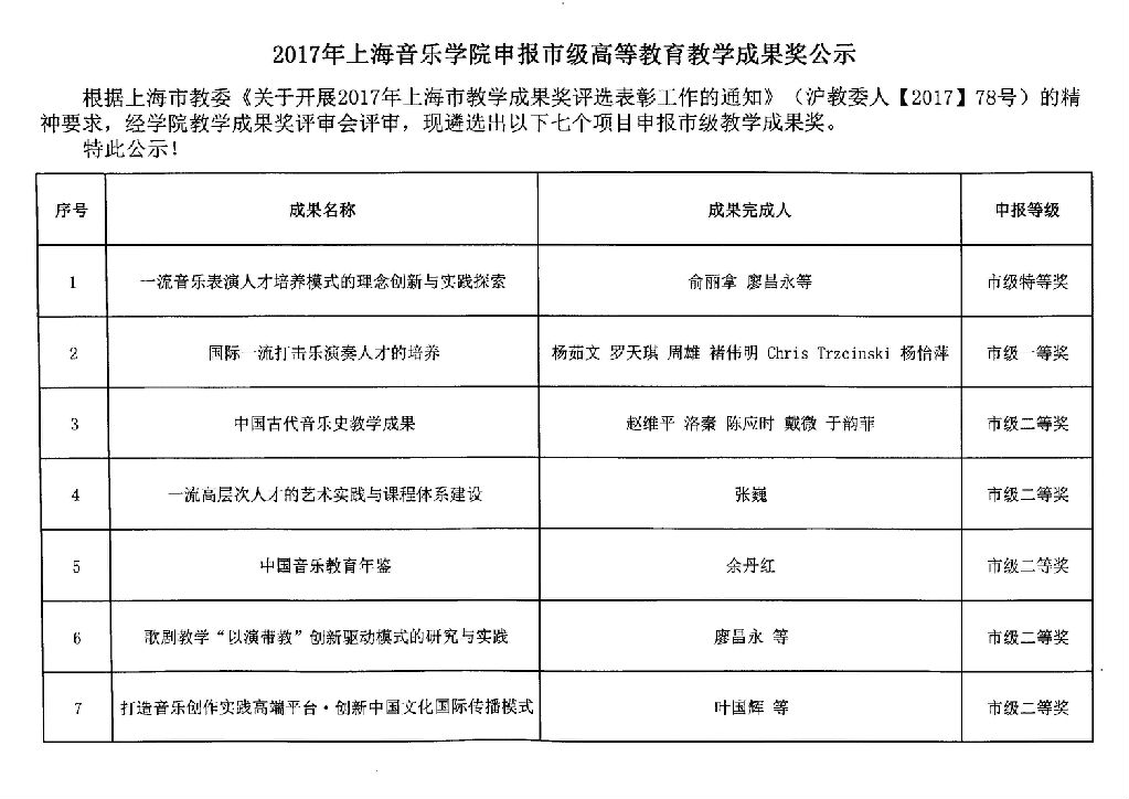 2017年taptap点点体育申报市级高等教育教学成果奖公示