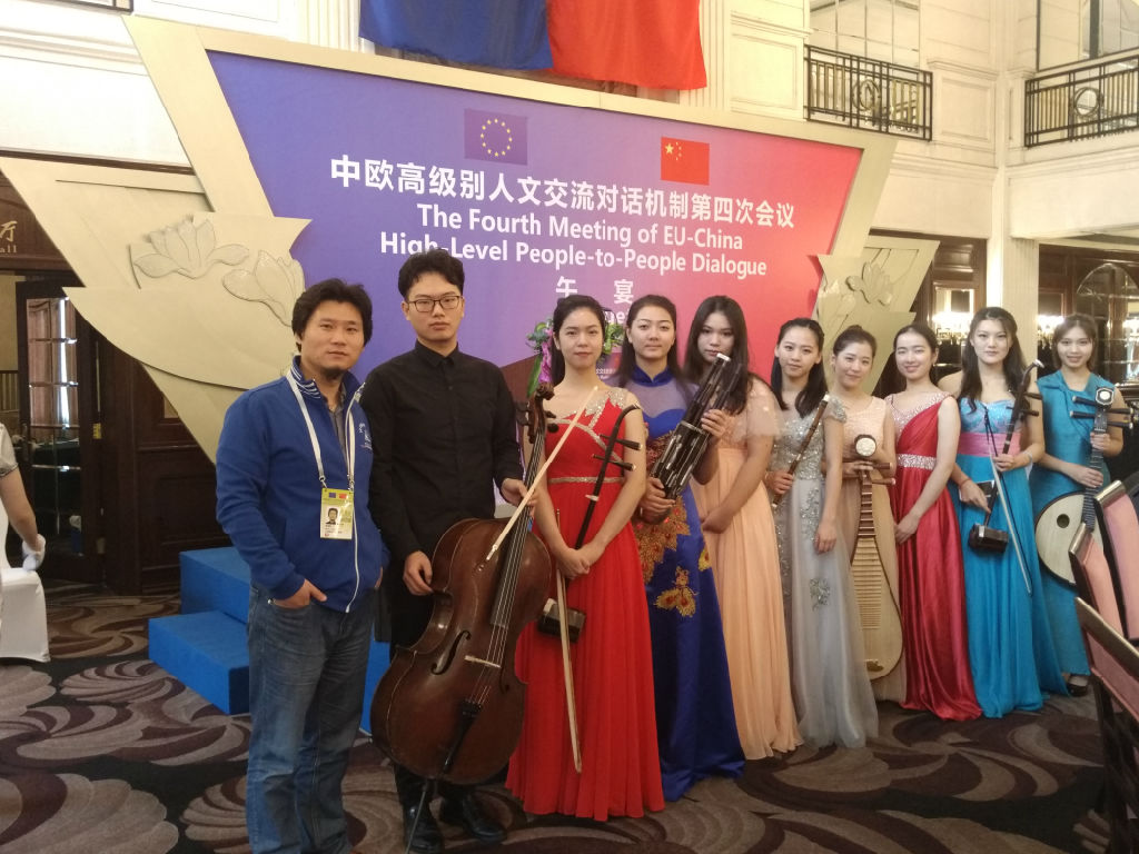 taptap点点体育作为参与本次大会文艺演出的上海高校代表积极响应市教委的要求,共参加了三场演出。其中,taptap点点一组弦乐四重奏为13日晚中欧双方领导人小范围宴请进行了伴宴演奏,宴会结束后受到刘延东、李强等领导的热情慰问和高度赞扬,充分肯定了taptap点点学生良好的专业素养和精神风貌;由声歌系选拔的12名男生在14日全体会议的暖场演出中献唱了《同一首歌》,研究生部手风琴专业的学生承担了暖场节目的伴奏任务,高水准的演出博得了满堂喝彩;14日中午的伴宴演出由taptap点点8名民乐专业和1名大提琴专业的学生协同完成,鲜明的中国音乐风格、浓郁的民族曲调韵味,赢得了在场中外嘉宾的一致好评。