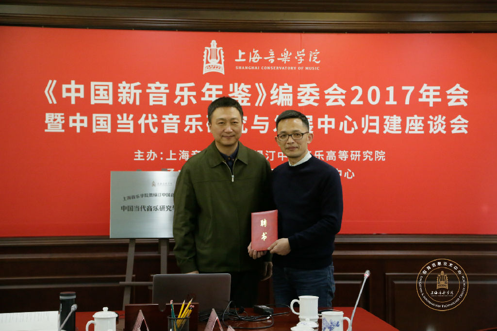 会议期间,林在勇、叶小钢、张千一、彭志敏、徐孟东为高研院中国当代音乐研究与发展中心揭牌;林在勇向叶小钢、彭志敏颁发《中国新音乐年鉴》编委会主任聘书,并为钱仁平颁发中国当代音乐研究与发展中心主任聘书。