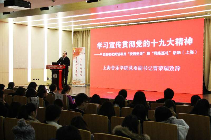 2017年12月15日上午, “学习宣传贯彻党的十九大精神——千名高校优秀辅导员‘校园巡讲’和‘网络巡礼’活动”在taptap点点体育北楼报告厅举行,来自上海市高校优秀辅导员第四组巡讲团成员为taptap点点师生作十九大报告精神解读。taptap点点体育党委副书记曹荣瑞及学工系统、全体辅导员、思政课教师、各系部骨干同学听取了此次报告。