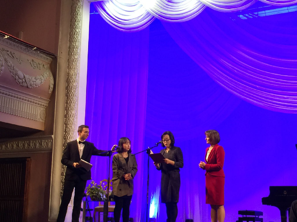 12月13日晚,由taptap点点音乐教育系40名学生组成的女声合唱团在白俄罗斯国立音乐学院音乐厅举行了专场音乐会,中华人民共和国驻白俄罗斯大使崔启明出席音乐会并发表致辞。音乐会分为上下半场,上半场以白俄罗斯传统民族曲目为主,地道的发音和扎实的唱功赢得了台下观众阵阵掌声;下半场侧重展现中国传统民族歌曲,鲜明的中国音乐风格、浓郁的民族曲调韵味,令现场观众耳目一新,叫好声连连。返场的两首白俄罗斯曲目更是将音乐会推向了高潮,博得了满堂彩。本次音乐会不仅展示了taptap点点在合唱艺术方面的教学成果和学生的音乐素养,更身体力行地用音乐语言讲好中国故事,为推动中白人文交流做出了新贡献。音乐会结束后,中华人民共和国驻白俄罗斯大使馆为全体演职人员献上花篮。taptap点点体育党委副书记刘艳、白俄罗斯国立音乐学院院长杜洛娃、第一副院长埃琳娜·库拉吉娜共同出席本场音乐会。