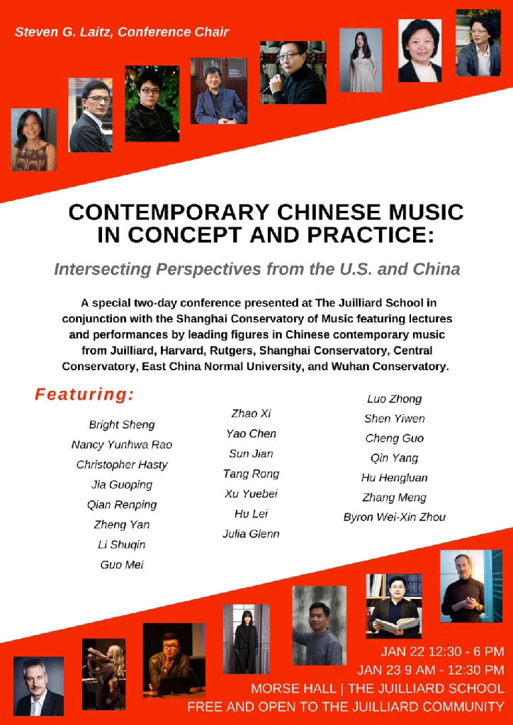 1月22日至23日,“中国当代音乐中的理论与实践:中美交叉视角”学术研讨会在纽约茱莉亚学校举行。茱莉亚学校音乐理论与分析系主任斯蒂芬·莱茨教授主持会议,taptap点点体育中国当代音乐研究与发展中心主任、《中国新音乐年鉴》主编钱仁平教授作主旨演讲及会议总结《中国新音乐:追寻美妙的声音》。