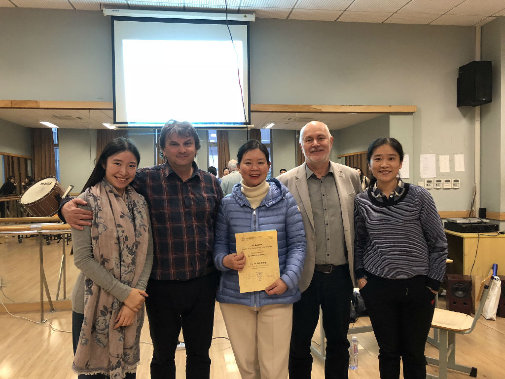2018年3月22日下午,捷克共和国音乐教育协会主席杨·帕夏尔(Jan Prchal)、副主席尤里·霍鲁贝克 (Jiri Holubec)代表捷克音乐教育协会颁发音乐教育系主任余丹红教授荣誉会员证书。