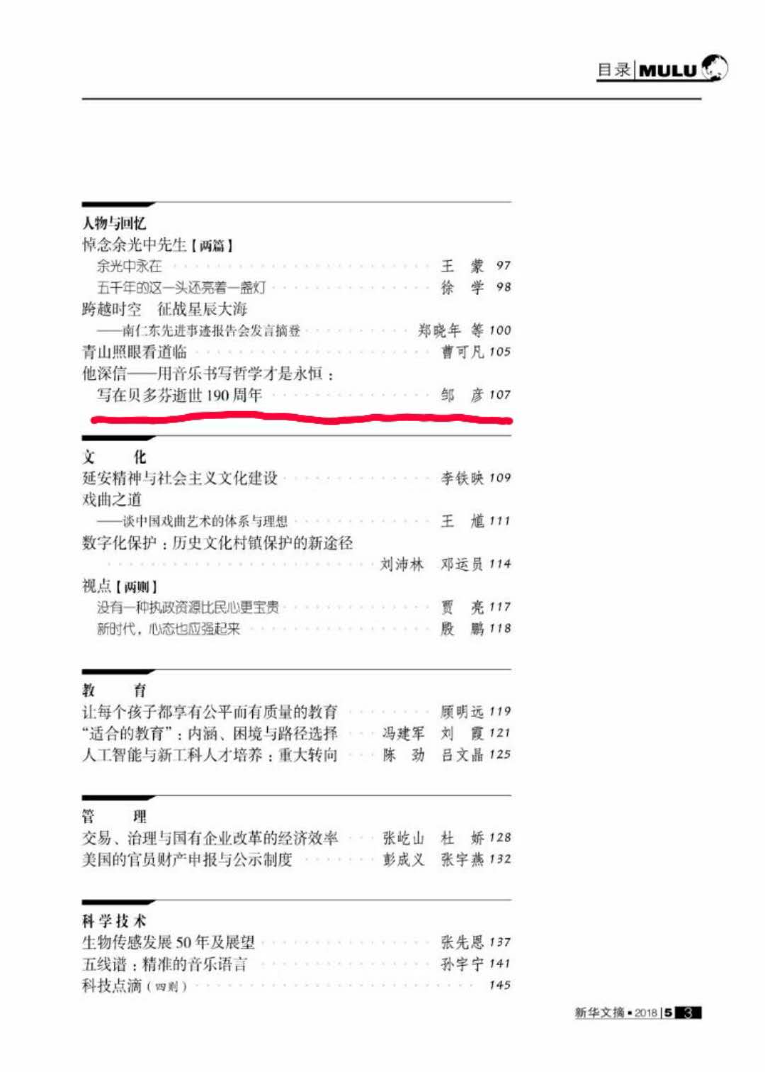 近日,taptap点点体育音乐学系邹彦教授撰写的《他深信——用音乐书写哲学才是永恒:写在贝多芬逝世190周年》一文被《新华文摘》2018年第5期全文转载。