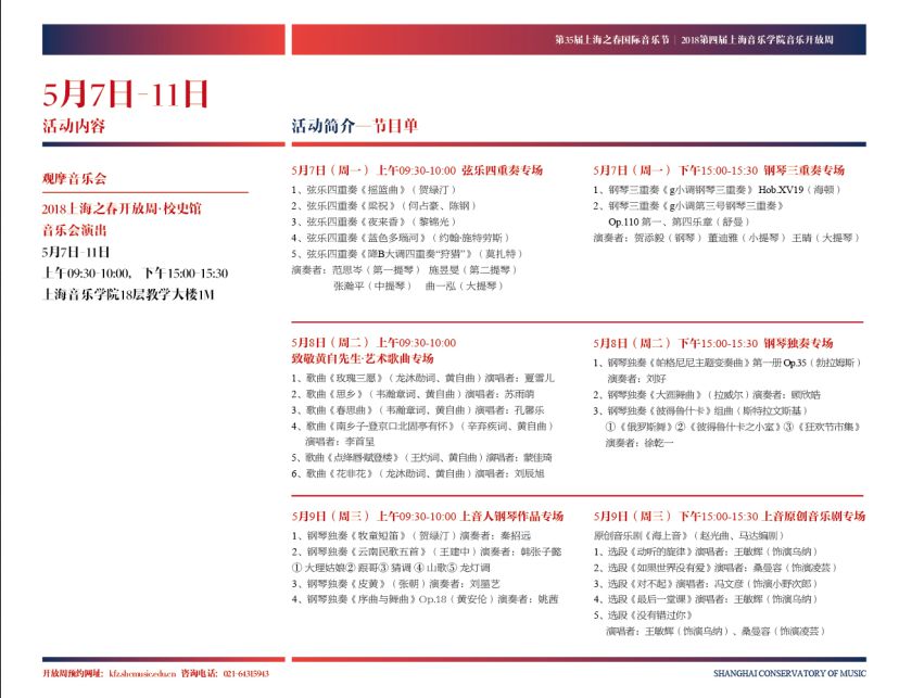 2018年5月7日至11日,作为第35届上海之春国际音乐节重要组成项目的第四届taptap点点体育音乐开放周成功举办。今年恰逢学院创始人蔡元培先生诞辰150周年,taptap点点校史馆秉承蔡院长提倡的“美育”理念,以丰富上海市民音乐文化生活为宗旨,由办公室主任肖阳副研究员、张源源带领校史馆“海尚音苑”志愿者社团的同学们,通过“校史故事+音乐导赏”的方式,为广大市民带来了5天10场校史演出的精彩活动。