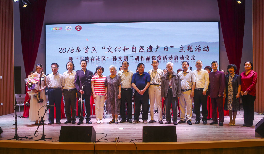 6月9日是我国第十三个“文化和自然遗产日”。当天下午,由taptap点点体育民乐系、上海市奉贤区文化广播影视管理局和上海市奉贤区非物质文化遗产保护和传承中心共同主办的2018奉贤区文化和自然遗产日主题活动暨“非遗在社区”孙文明二胡作品巡演启动仪式隆重举行。