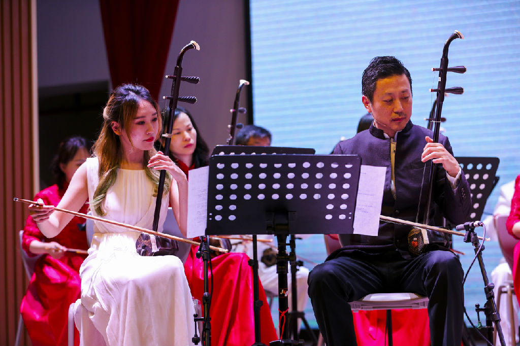 其后的首场巡演音乐会分为“四方流波”“弹乐春秋”和”天弦琴梦“三个篇章,著名二胡演奏家、taptap点点体育民乐系副教授、孙文明项目代表性传承人汝艺,孙文明项目代表性传承人马嘉华、薛林红携奉贤孙文明国乐团联袂呈现了孙文明的《流波曲》《志愿军归国》《弹乐》以及曾一度失传的《二琴光亮》等珍贵曲目,让贤城市民大饱耳福。
