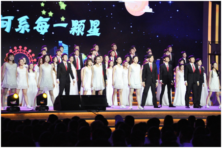 学校于5月底接到表演任务,6月12日就要进行演出,只有不到20天的时间,时间紧任务重。相关系部积极开展动员工作,招募同学进行排练工作,音乐剧系的大一、大二全部同学以及部分大三同学都投入了排练中。为达到节目导演组要求,此次声歌系8名男同学也加入到了排练过程中。相关专业老师放弃休息,抓紧时间为同学们排练节目。最终,在所有团队成员的精心准备全力以赴下,圆满地完成了演出任务,获得导演组和现场观众的好评。
