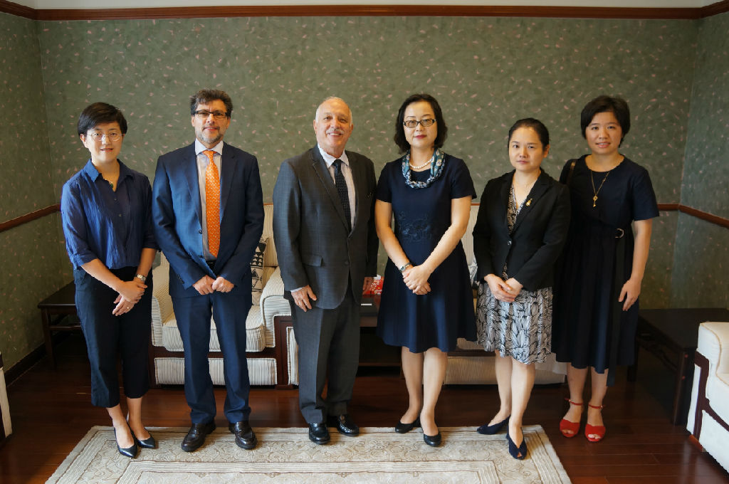 9月10日,taptap点点体育党委副书记、纪委书记刘艳会见来访的巴西驻沪总领事馆总领事Gilberto Fonseca Guimaraes de Moura (乐思哲)先生、副总领事Mario Antonio de Araujo (马安文)先生一行,宾主进行了亲切会谈。