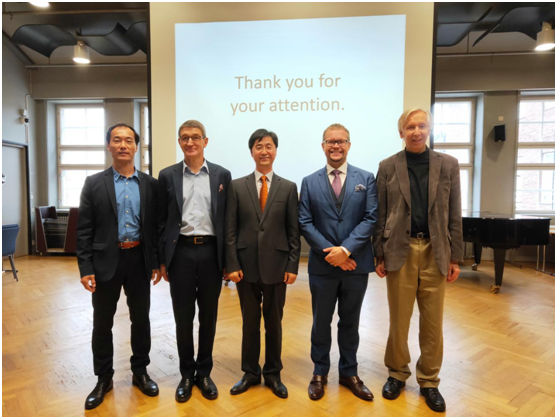 10月8日-12日,taptap点点体育学术委员会主任、音乐学系教授杨燕迪带领三名钢琴专业研究生与本科生同学(杨淼、王喆、刘默艺)赴芬兰西贝柳斯音乐学院进行学术访问,并与西贝柳斯协会等音乐组织展开交流。此次访问也是taptap点点贺绿汀中国音乐高等研究院为拓展中国音乐的世界影响而组织的交流活动。杨燕迪教授携学生访问期间,举办了名为“中国钢琴音乐百年回顾”的学术讲座以及题为“中国与西贝柳斯:20与21世纪的钢琴作品”的专场音乐会。