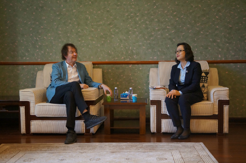 皇家伯明翰音乐学院中国区经理刘飞女士,国际交流处副处长乐佾真会见时在座。