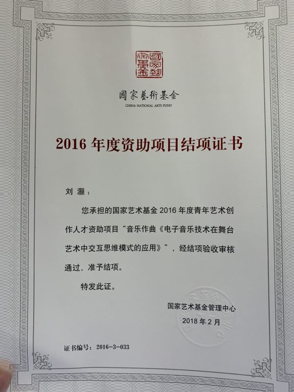 刘灏“音乐作曲《电子音乐技术在舞台艺术中交互思维模式的应用》”结项