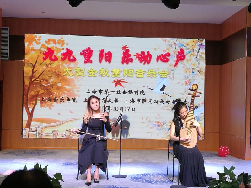 最后,杨帆、张柯同学的民乐重奏《青花瓷》《茉莉花》压台登场,两首乐曲旋律曼妙,音色灵动,加上演奏者投入且富有感染力的演奏,让音乐会圆满收尾。演出结束后,老人们紧紧握着志愿者的手表示感谢,感谢志愿者们能够在繁重的课业外,走进福利院,走近老人身边,让自己的晚年生活不再感到孤单。