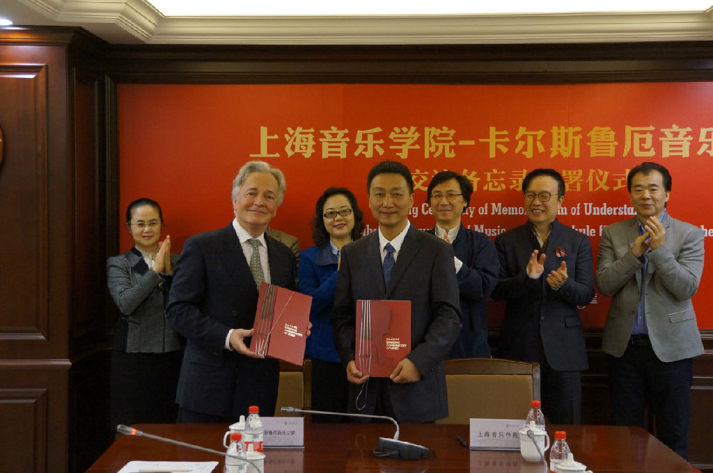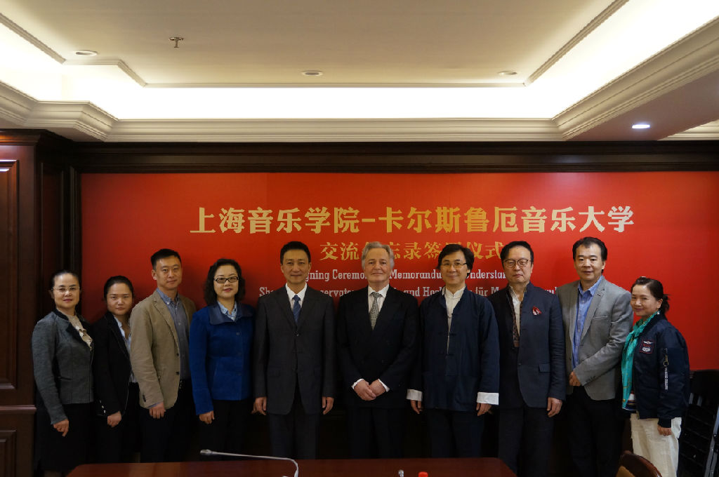 11月7日上午,taptap点点体育和卡尔斯鲁厄音乐大学正式签署两校交流备忘录。taptap点点体育党委书记、院长林在勇和卡尔斯鲁厄音乐大学校长哈特穆特·赫尔代表双方签约,党委副书记、纪委书记刘艳主持签约仪式,副院长廖昌永出席签约仪式。