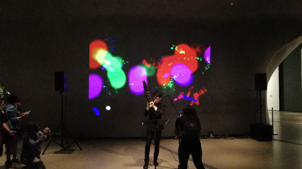 2018年8月25日,我系纪冬泳副教授受邀参加由美国洛杉矶布洛徳当代艺术博物馆(The Broad),主办的第三季夏日音乐盛会(Summer Happenings),并展示了其作品《斑》-为笙、电子音乐与互动影像(笙演奏者:戴子凡;工程师:翁若伦)。演出现场与热情的观众进行了问答互动,同时还接受了洛杉矶当地《侨报》、《世界日报》、《洛杉矶时报》等多家媒体的采访