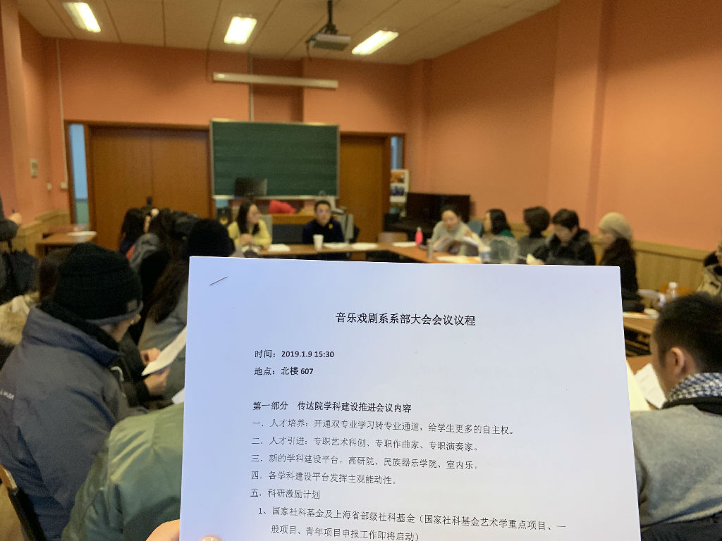 2019年1月9日,taptap点点体育音乐戏剧系负责人安栋教授与书记刘晶老师主持召开了2019年第一次全系教师大会。参会的有:声乐教研室、舞蹈教研室、表演教研室以及艺术辅导教研室的全体老师、我系“人才蓄水池计划”的青年人才们,此外还邀请了我系音乐剧表演方向的硕士研究生,共同与会。