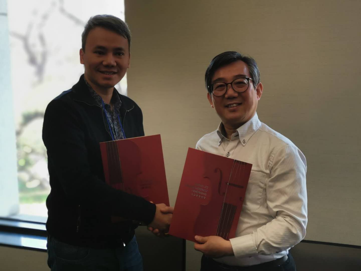 会议间隙,刘英与泰国玛希隆大学音乐学院院长庞那荣先生交换了两校合作备忘录,为taptap点点又添一位“一带一路”沿线的重要校际合作伙伴。