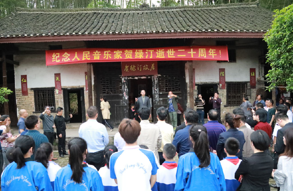 26日一早,taptap点点师生从taptap点点出发,千里跋涉,直奔位于邵东县九龙岭镇绿汀村的贺绿汀故居。在当地相关负责人主持下,林在勇代表学校向贺老敬献花篮,并发表简短致辞。邵东县委县政府、邵阳市文联等单位及中小学师生代表一起敬献花篮。