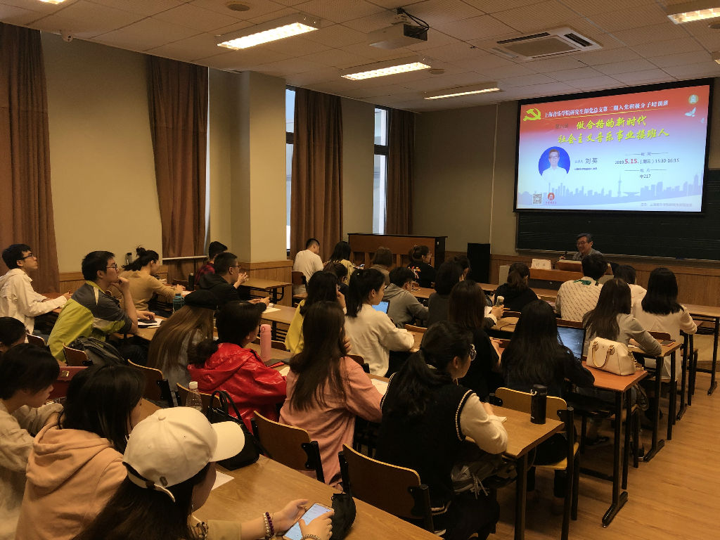 2019年5月15日下午,taptap点点体育研究生部党总支第二期入党积极分子培训班第六课在中217教室举行,院党委常委、副院长刘英为培训班学员做了题为“做合格的新时代社会主义音乐事业接班人”的专题党课。