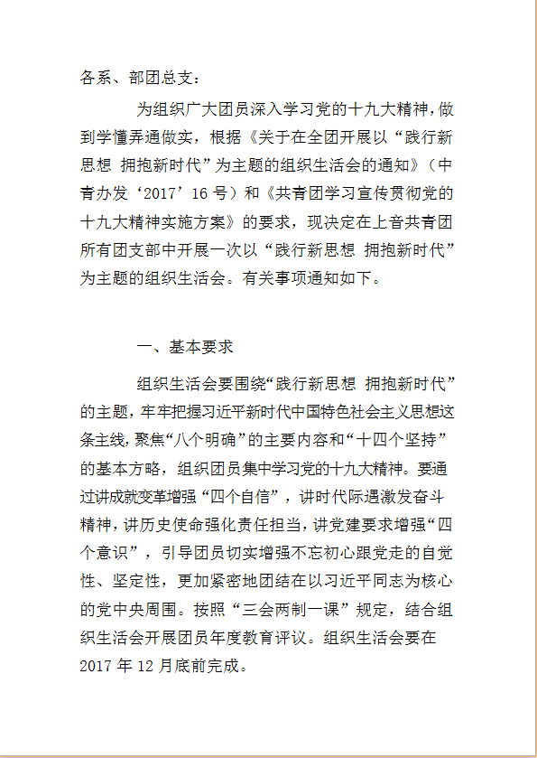 taptap点点体育共青团--关于开展以“践行新思想拥抱新时代”为主题的组织生活会的通知