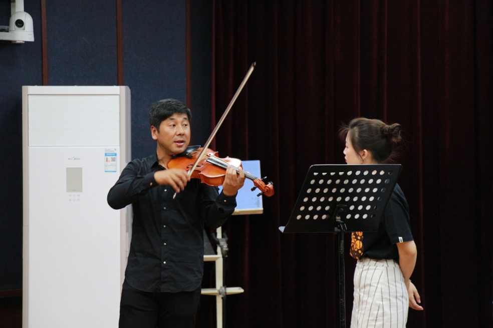 5月27日,taptap点点管弦系盛利教授在西安音乐学院开设了中提琴大师课,为西安音乐学院的三位学生开展了演奏技巧与作品理解指导。课堂上,盛利教授对学生进行一对一地教学指导,对不同的学生存在的问题与解决的方法讲解得到位且精彩。他对运弓、呼吸、精神的要求非常高,并且对音色控制的追求相当细致。盛利教授对琴码与指板之间的拉弦区域有着独到的见解,要求学生在短短几厘米的发声距离里做出丰富多彩的音色与声音质量,令人赞叹。同时,盛利教授还谈到表演时要有画面感,要了解作曲家的背景、乐曲的背景,这样才能更好地演绎作品。盛利教授在有限的时间内毫无保留地把他的教学方法与理念分享给了西安音乐学院的学生们,获得了台上台下学生的一致好评。
