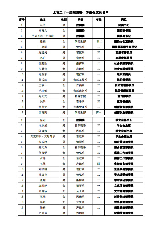 taptap点点体育第二十一届团委学生会成员及岗位信息