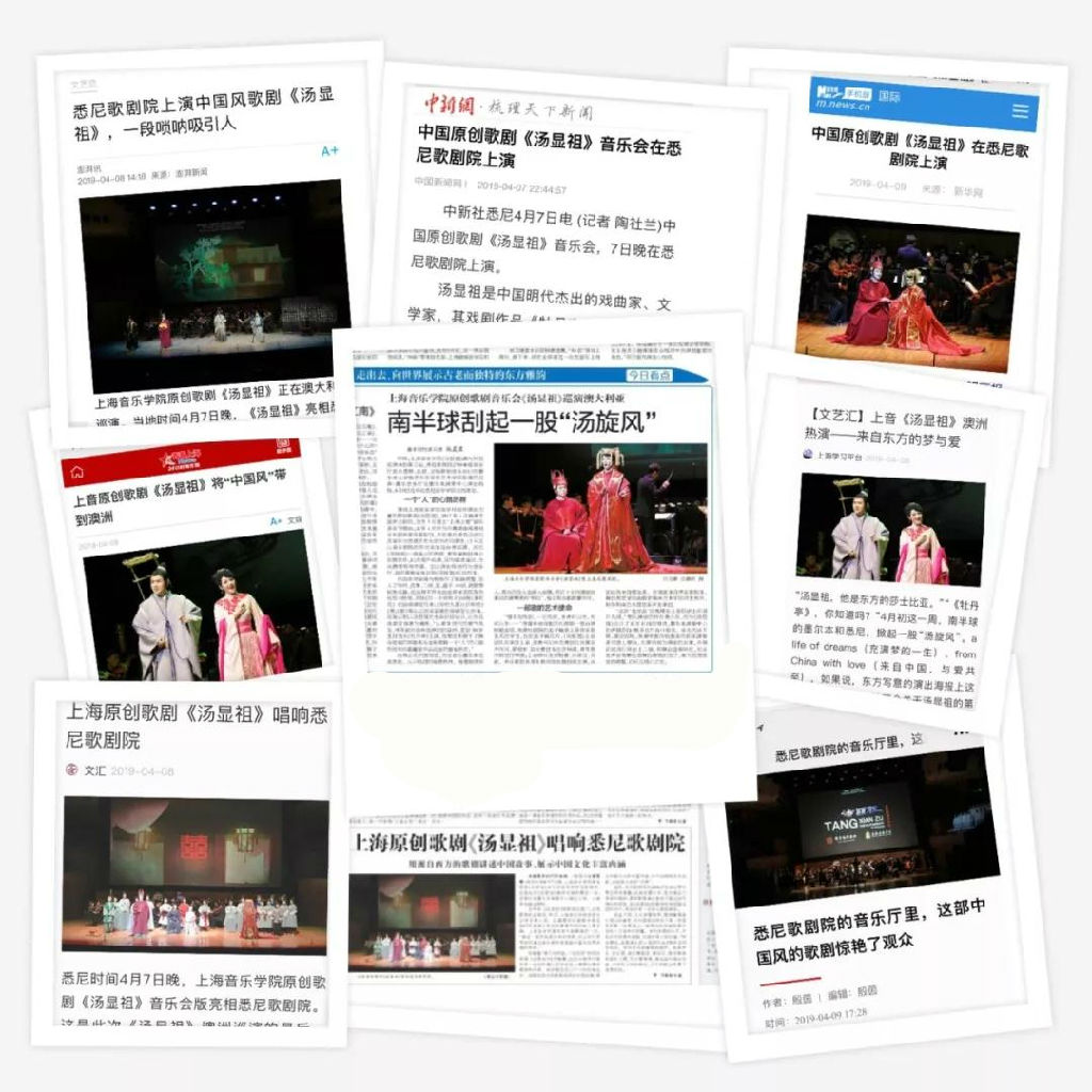 此次《汤》剧澳洲巡演不论是普通观众,还是业内人士都给予了高度评价,国内外主流媒体竞相报道。“简直不敢相信舞台上和乐池里的还都是在校的学生”“演出真是太棒了”这是现场观众对此次巡演最多的评价。新华社、人民网、中新社、解放日报、文汇报、新民晚报、新闻晨报、青年报、上海人民广播电台、东方卫视、上海教育电视台、东方网、中教在线、CITY HUB、尚城、LIMELIGHT、ON THE HOUSE等国内外主流媒体竞相报道,总计30余篇(次)。学习强国APP、中国驻墨尔本总领馆、上海教育等新媒体平台也做了报道或转载。澳大利亚著名全国性专业音乐类网站、杂志对《汤》及艺术类网站的专业剧评人都为《汤》剧打了4星的高分。